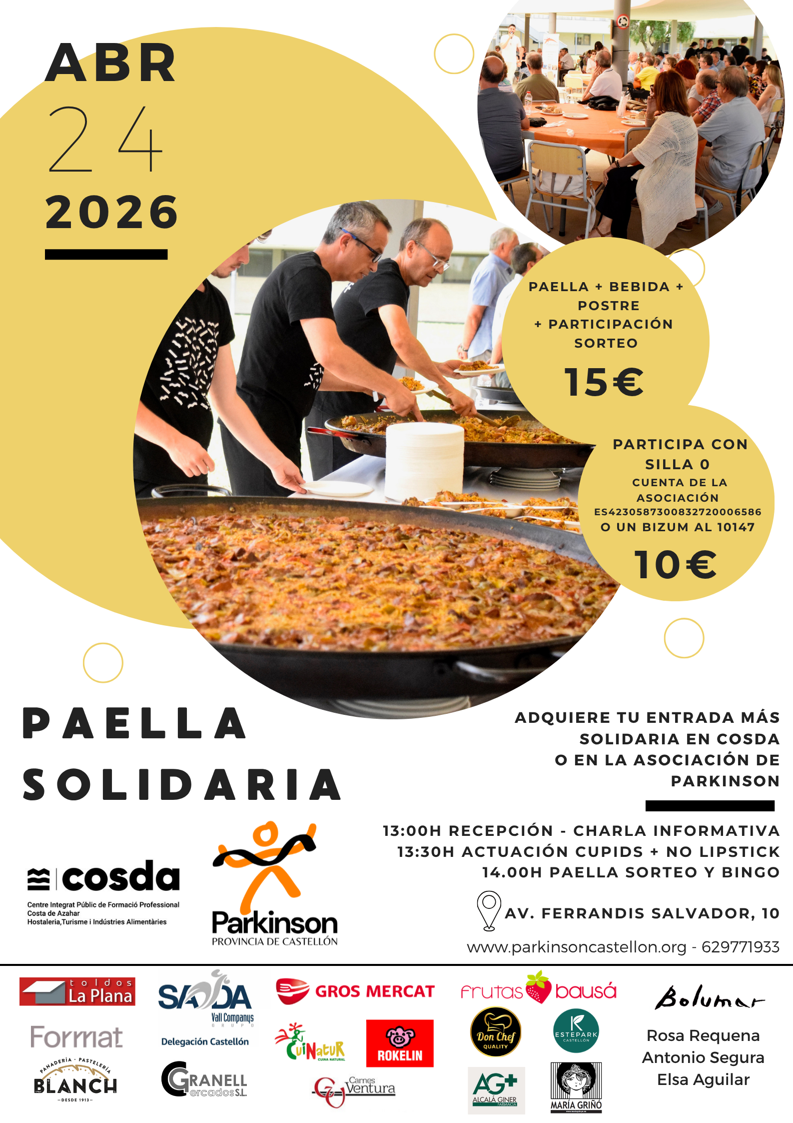 El próximo 24 de abril, en la Escuela de Hostelería COSDA de Castellón, celebraremos una paella solidaria para apoyar a la Asociación a cargo del alumnado de la escuela.