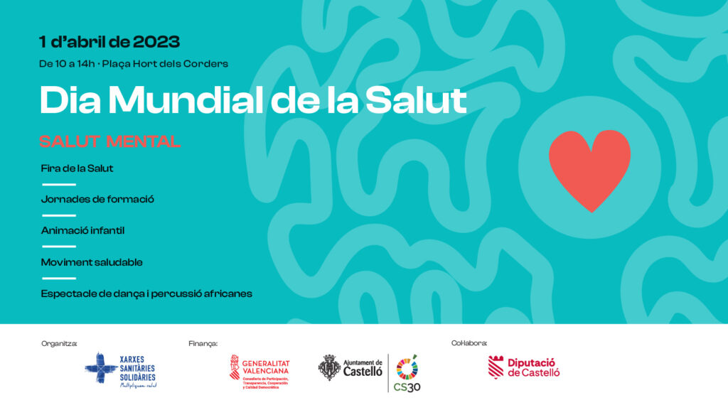 La Red Sanitaria Solidaria de Castelló celebrará el Día Mundial de la Salud el próximo sábado 1 de abril en la plaza Huerto Sogueros de Castelló.
