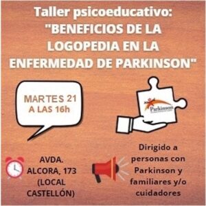 21 de diciembre: TALLER PSICOEDUCATIVO «Beneficios de la logopedia en la enfermedad de Parkinson»