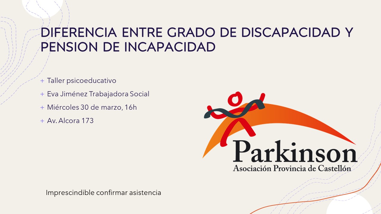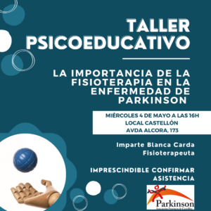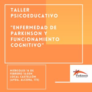 El próximo miércoles 16 de febrero a las 16:00h, Carolina García, neuropsicóloga de la asociación, impartirá un taller psicoeducativo sobre la Enfermedad de Parkinson y el funcionamiento cognitivo, en el local de Av. Alcora 173 de Castelló de la Plana.
