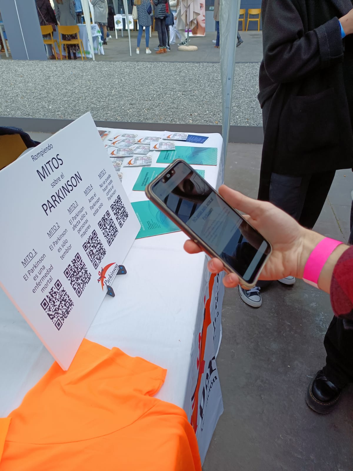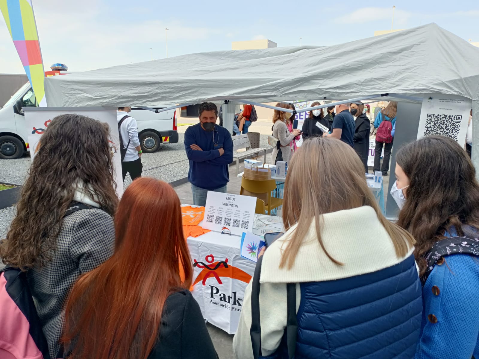 Hasta la carpa se está acercando un gran número de estudiantes, interesados en descubrir información sobre el Parkinson, a través de los códigos QR asociacdos a los falsos mitos