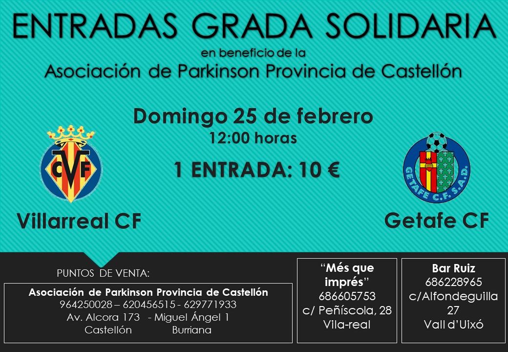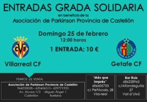 El Villarreal C.F., dentro de su iniciativa “Grada Solidaria”, ha donado a la Asociación entradas para el partido que tendrá lugar el próximo domingo 25 de febrero en el Estadio de la Cerámica a las 12.00h.