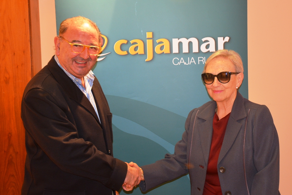 El vicepresidente de la Fundación Cajamar Comunidad Valenciana, Ignacio Ferrer, recibió el agradecimiento de la vocal de la junta directiva de esta asociación, Vicenta Vallés.